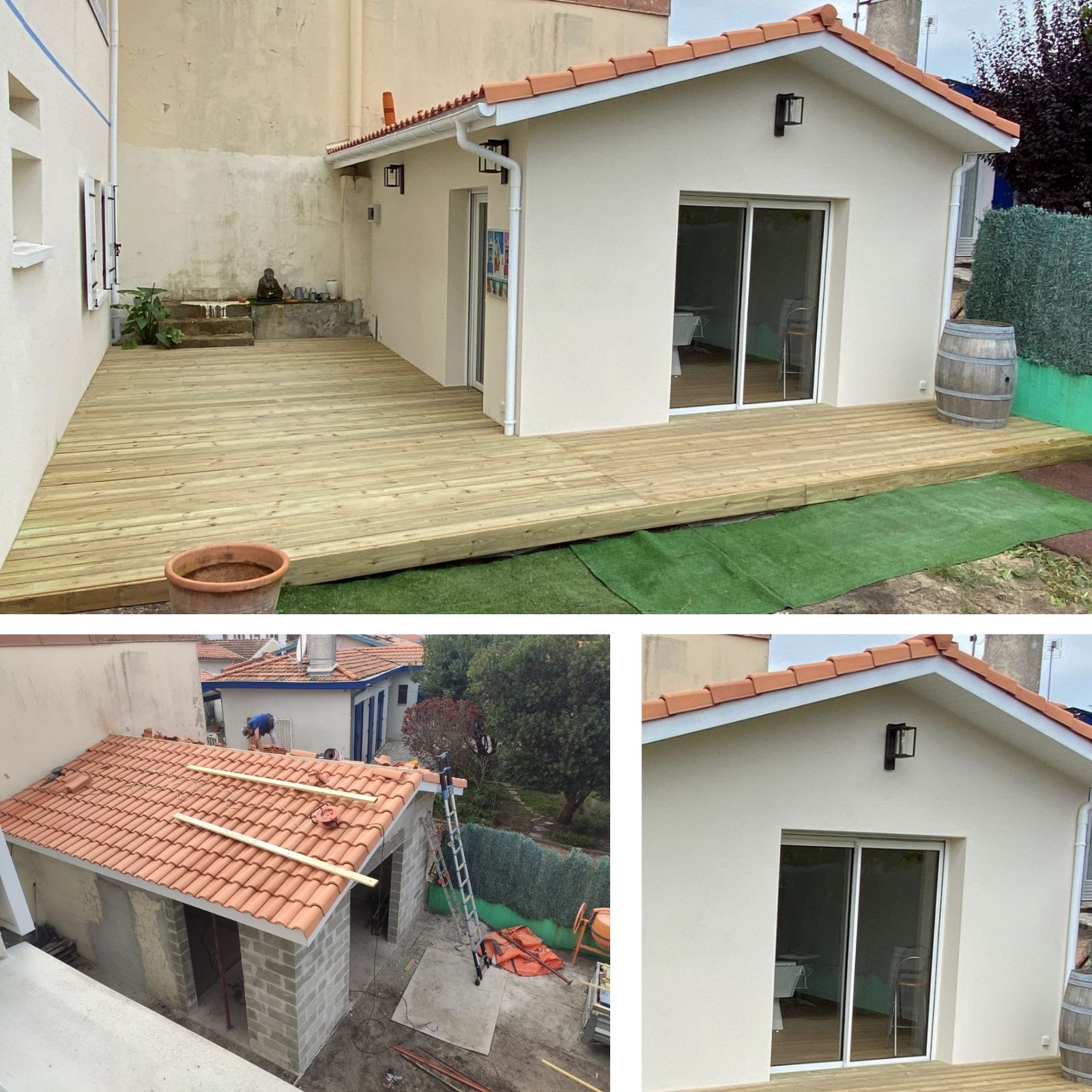 Avant : Après : Création d’une dépendance à Arcachon avec ouverture sur la terrasse en caillebotis.